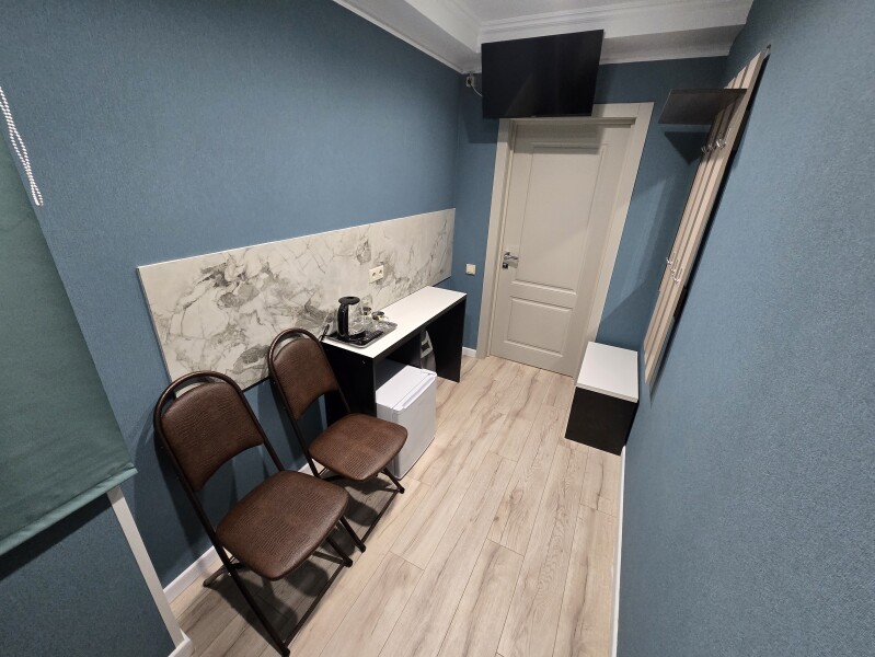 Уютный номер для одного гостя, подходит для короткого проживания. В номере есть всё необходимое: односпальная кровать, комплект полотенец, фен, телевизор, чайник и чайный набор.